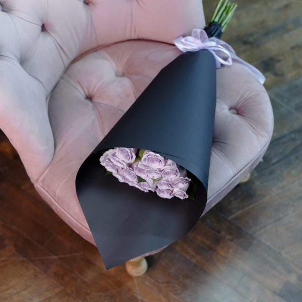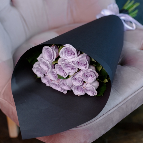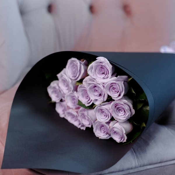 Acest deosebit buchet din 15 Trandafiri mov este un adevarat miracol pe care il poti prezenta celor mai iubiti si apropiati oameni. La solicitare, fiecare buchet cu trandafiri mov este livrat intr-un mod special: in costum, manusi albe si papion roz. La el atasam un pliculet cu Chrysal: substanta care va mentine proaspete florile alese de dumneavoastra si un card de felicitare gratuit, pe care imprimam mesajul dorit. Componeta: Trandafiri, Hartie, Panglica de Satin si Organza.